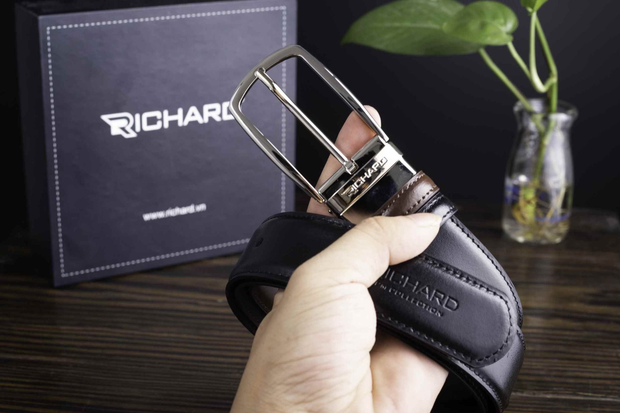 - Dây lưng 2 mặt: Nâu - Đen Trơn