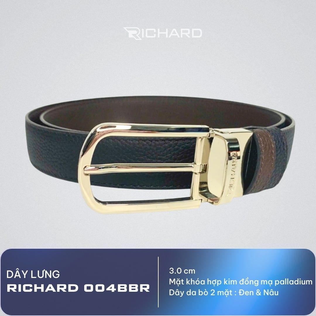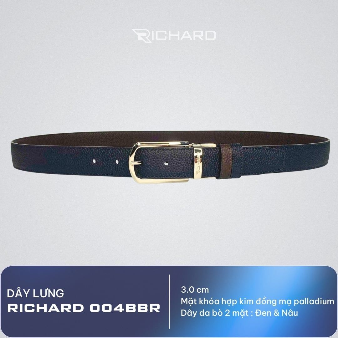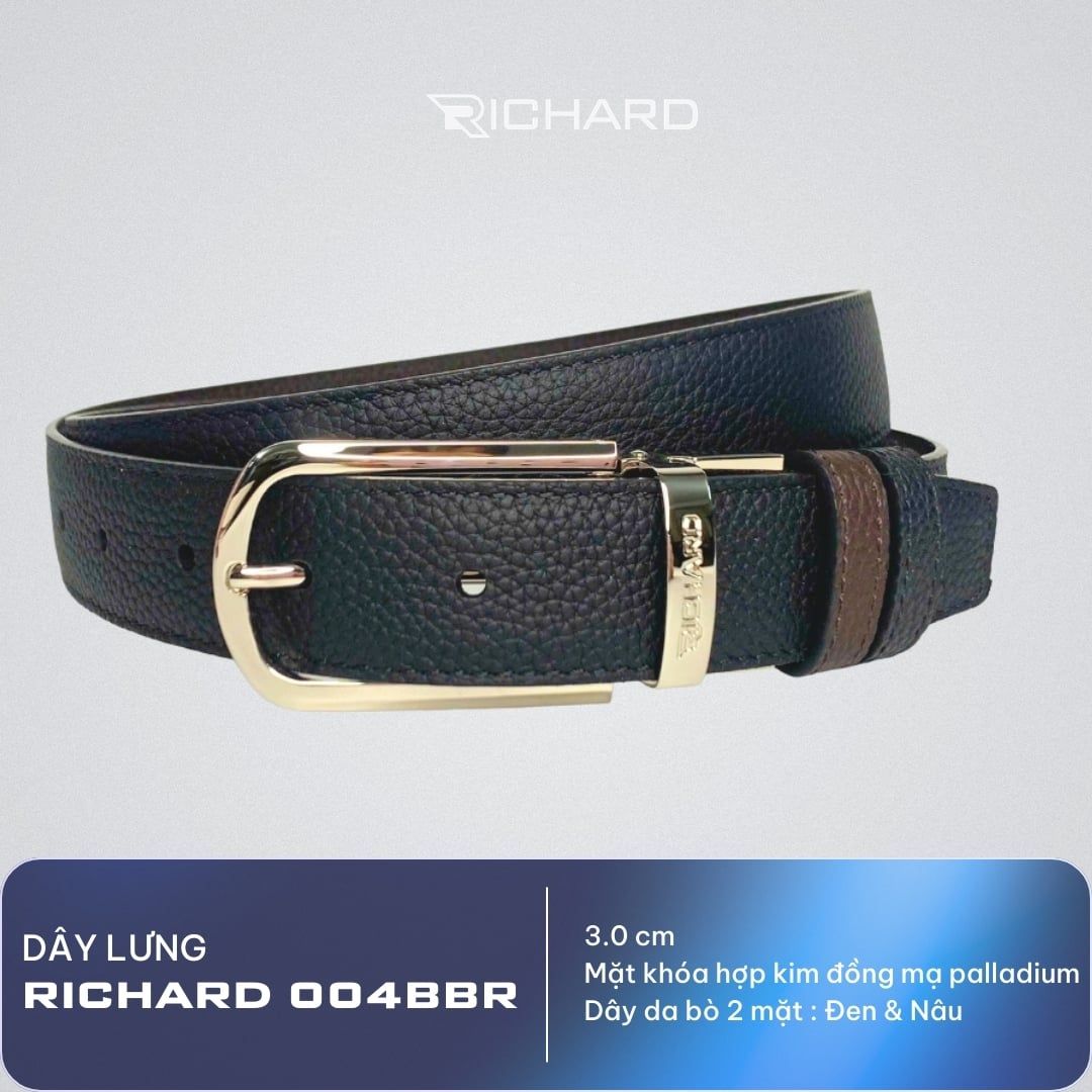 Thắt lưng nam da bò 3.0 cm nâu đen sần khóa kim Richard RC004BR