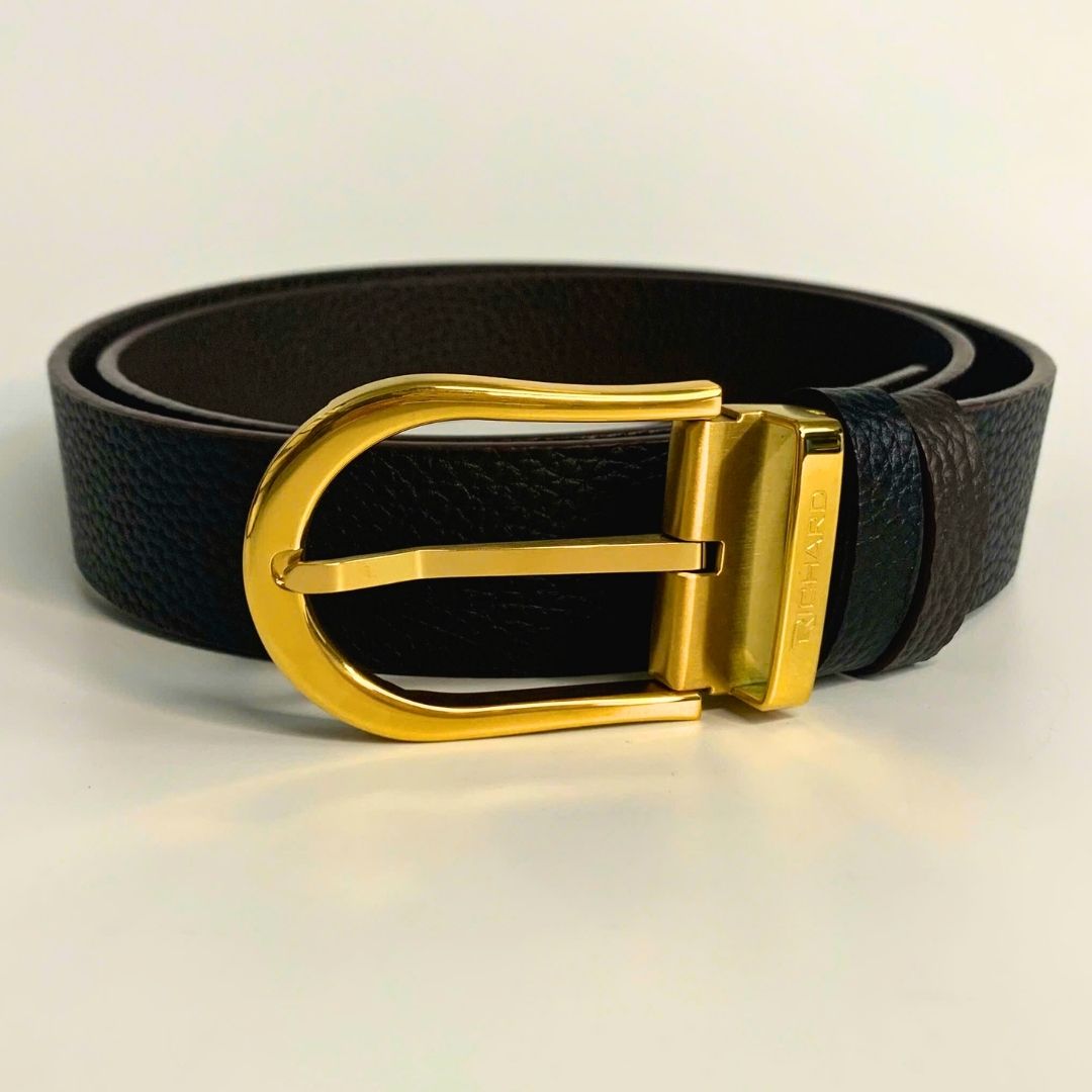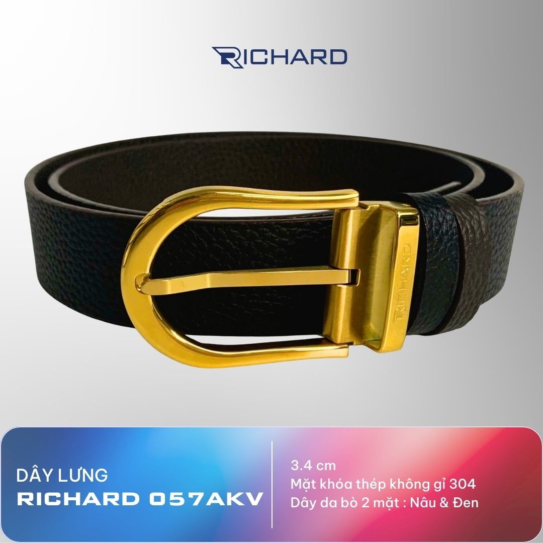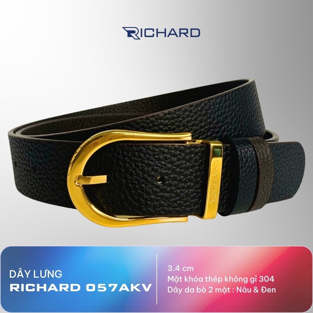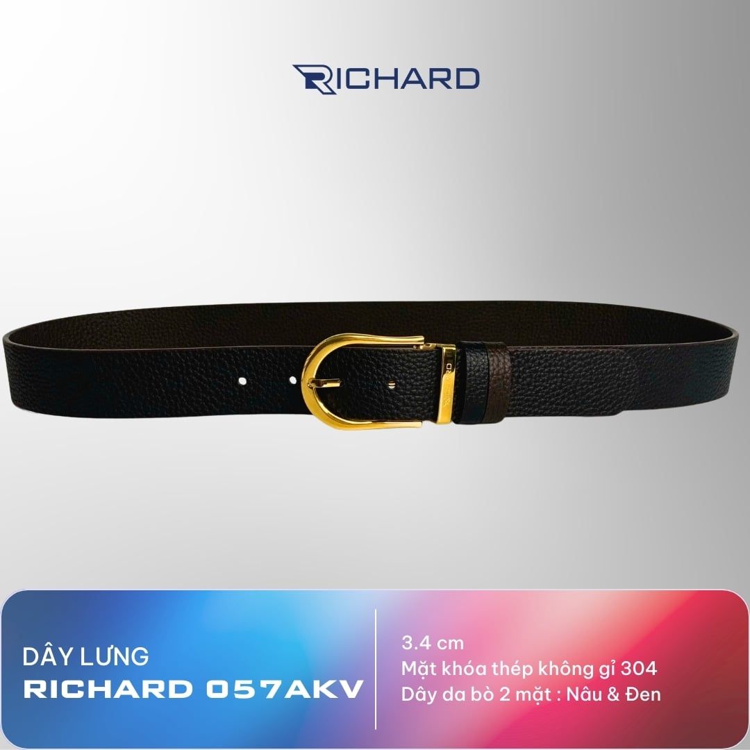 Dây thắt lưng nam da bò hai mặt nâu/đen 3.4cm khoá kim Richard K057AKV