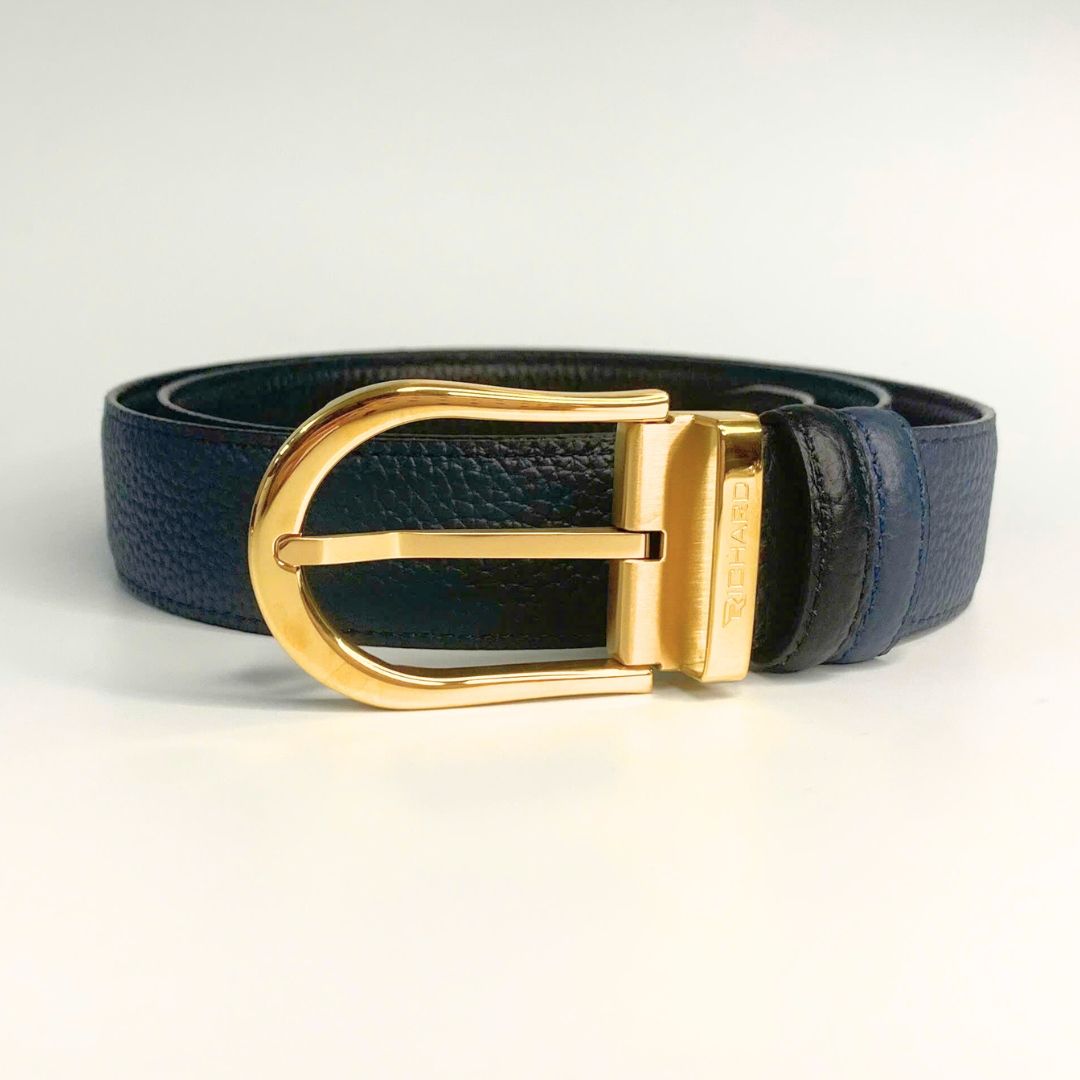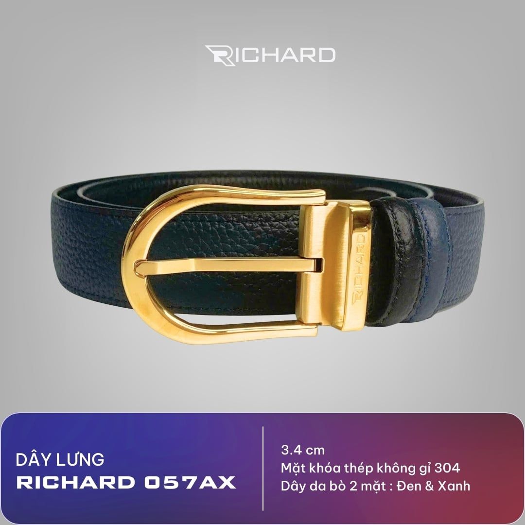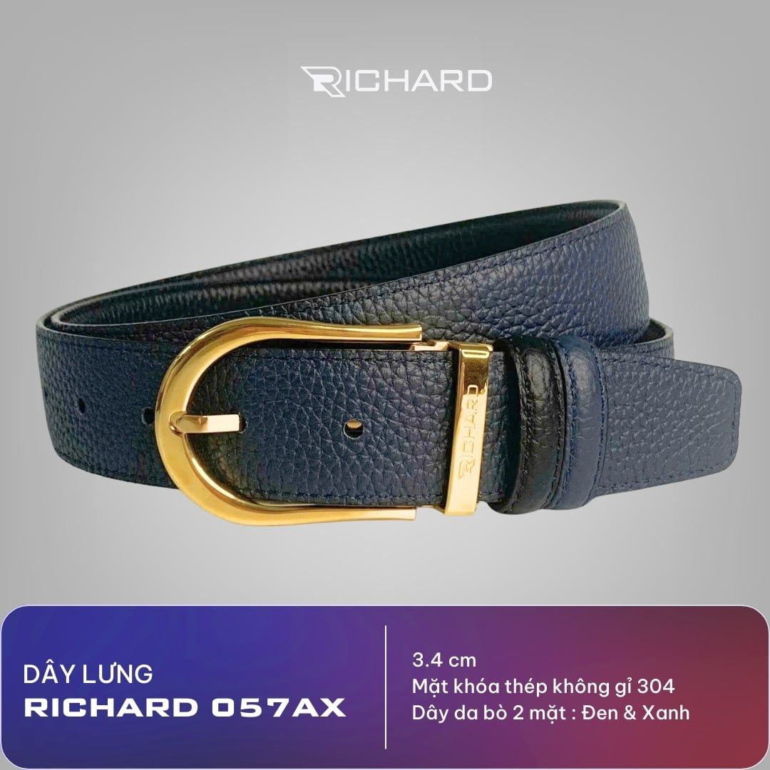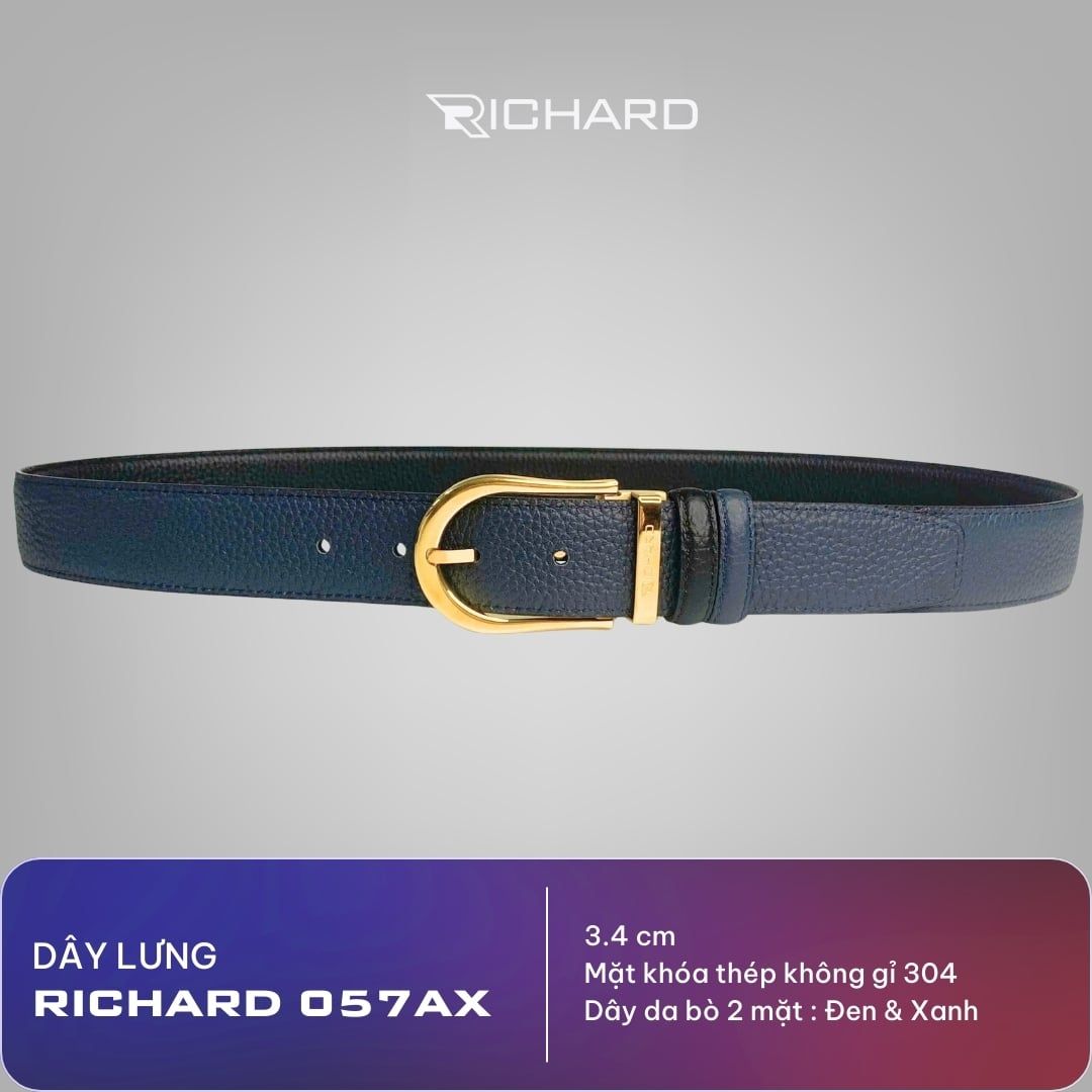 Dây lưng nam da bò xanh đen 3.4 cm mặt khóa thép không gỉ Richard RC057AX