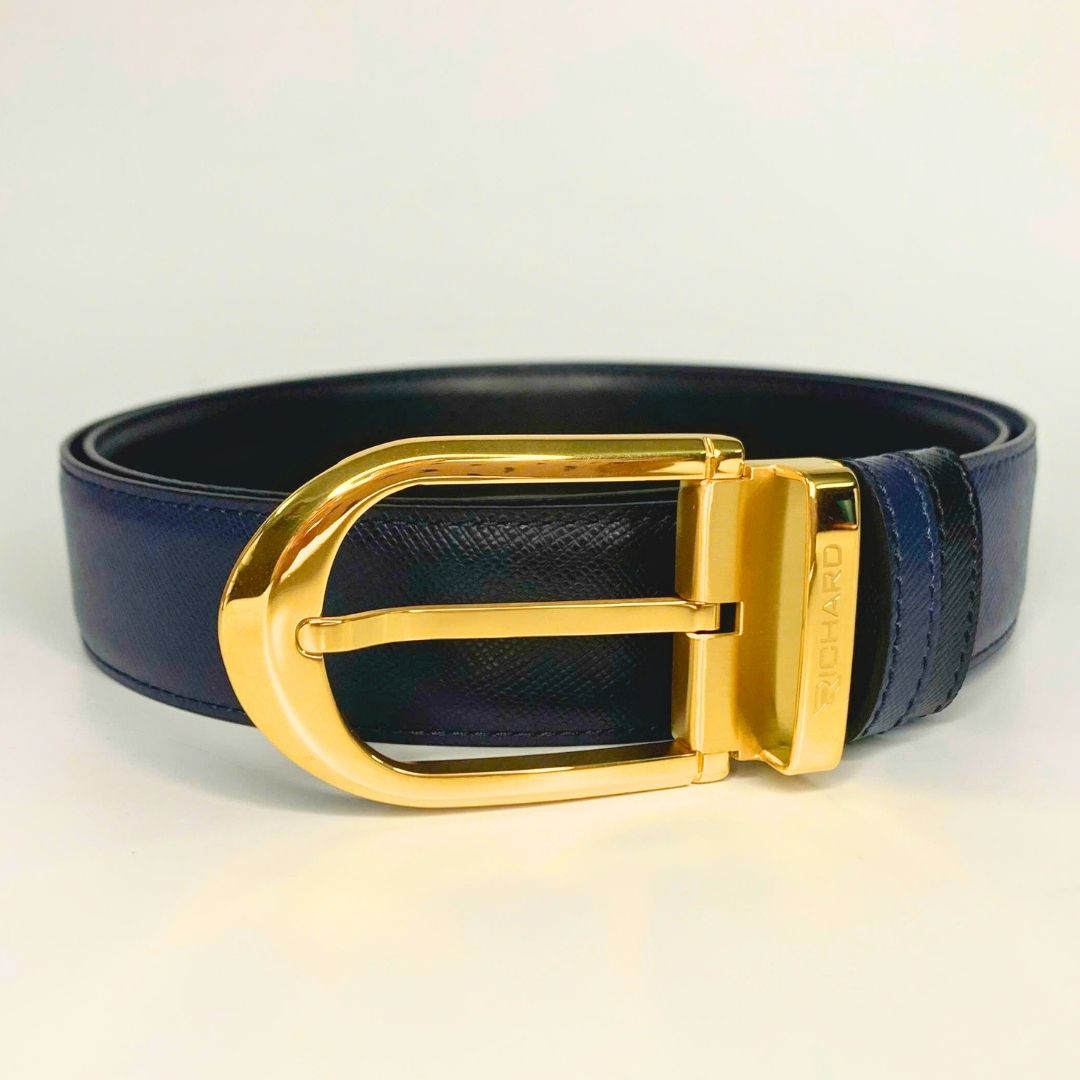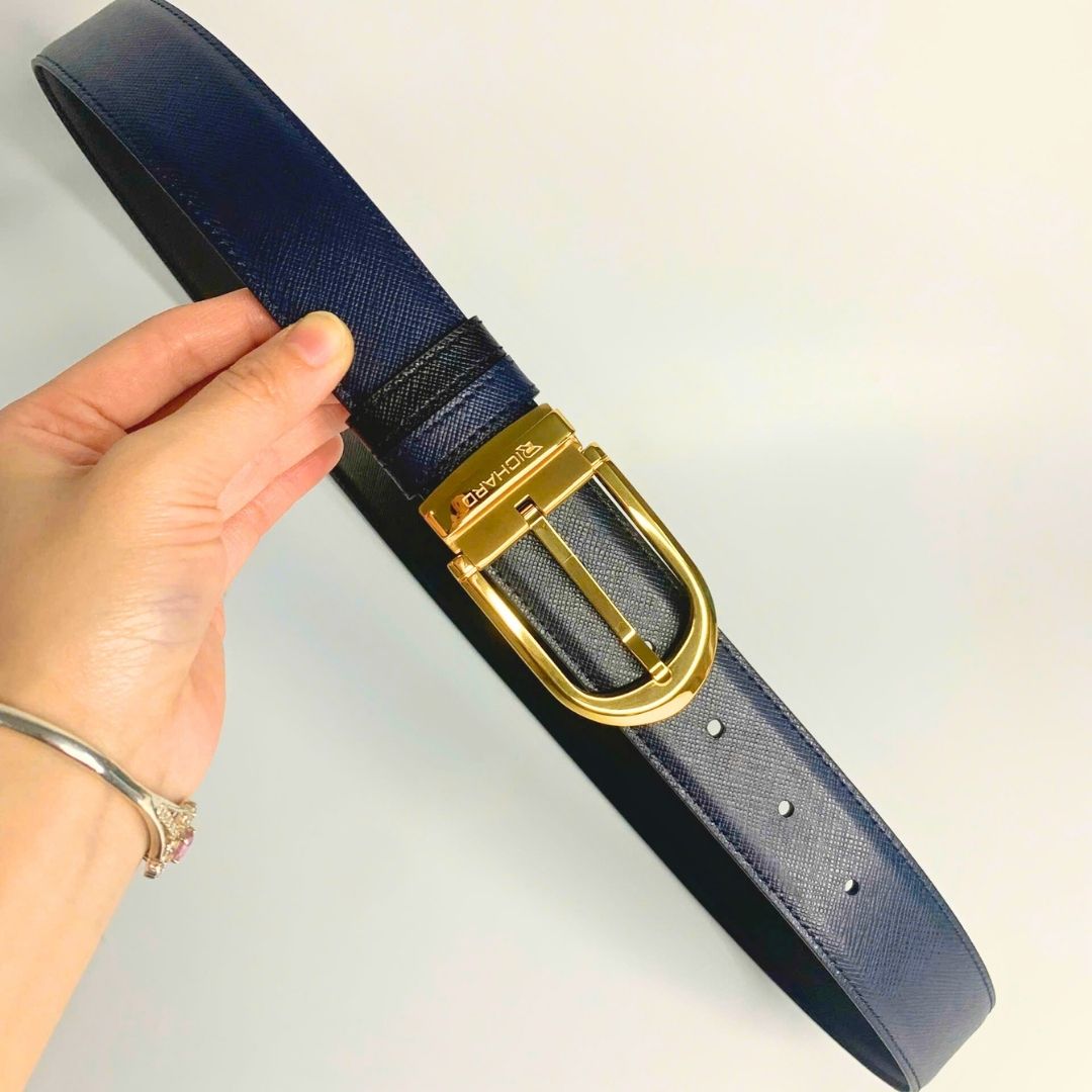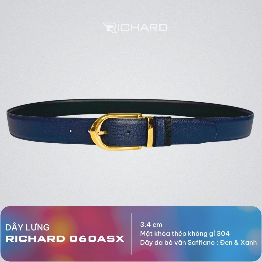 Dây lưng nam da bò vân Saffiano 3.4 cm mặt khóa thép không gỉ RC060ASX