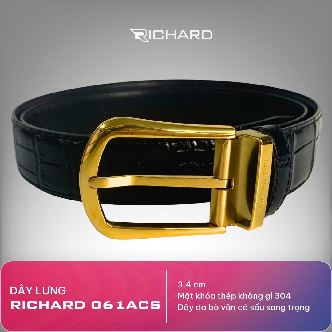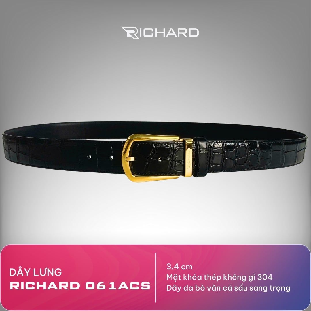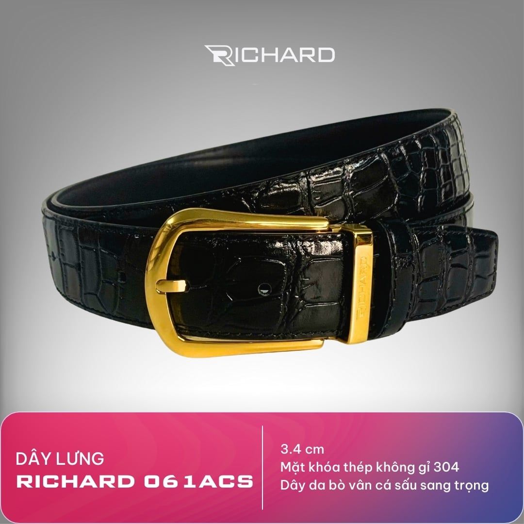 Dây lưng nam vân cá sấu 3.4cm khoá kim Richard RC061ACS