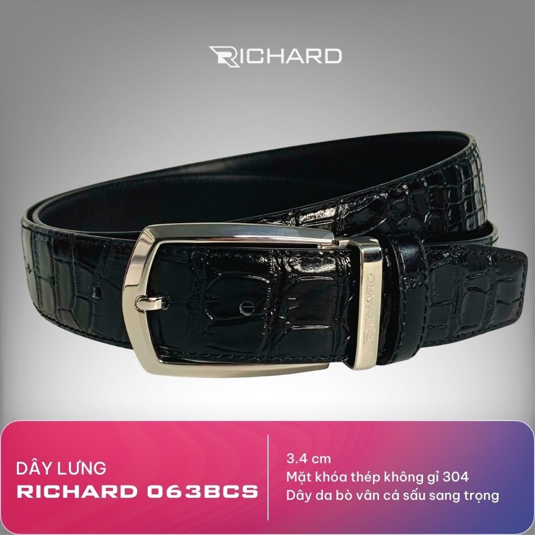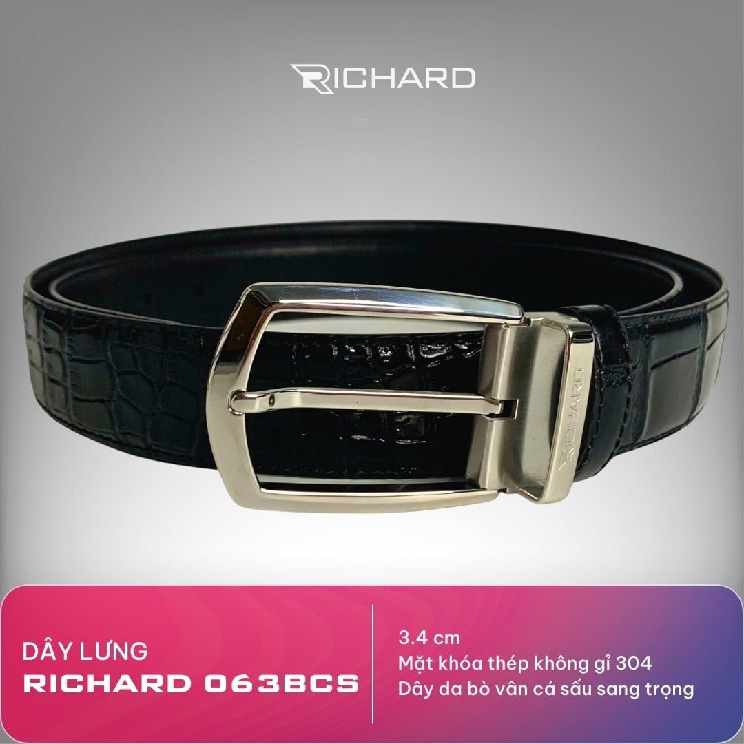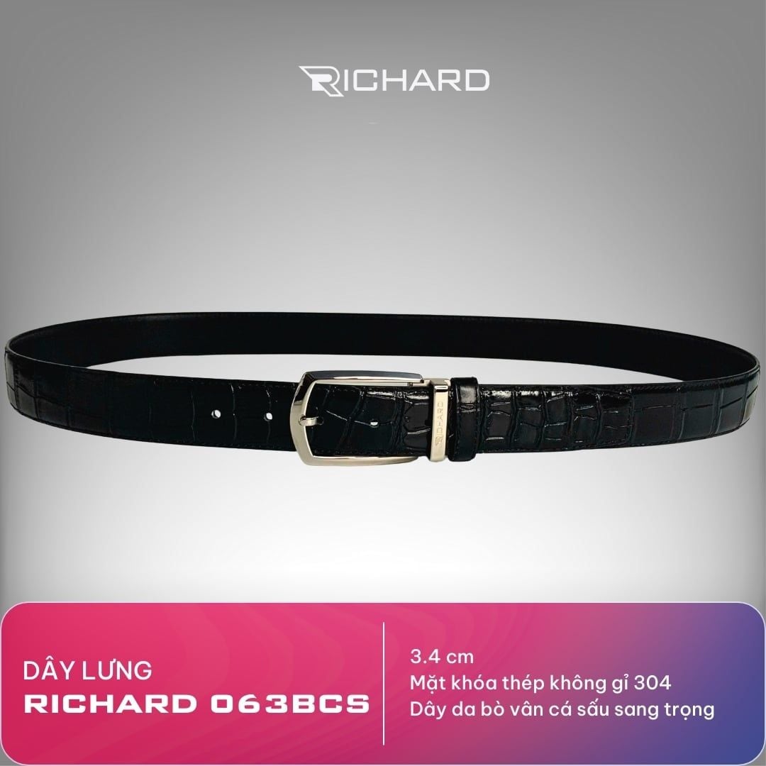 Dây lưng nam vân cá sấu 3.4cm khoá kim Richard RC063BCS