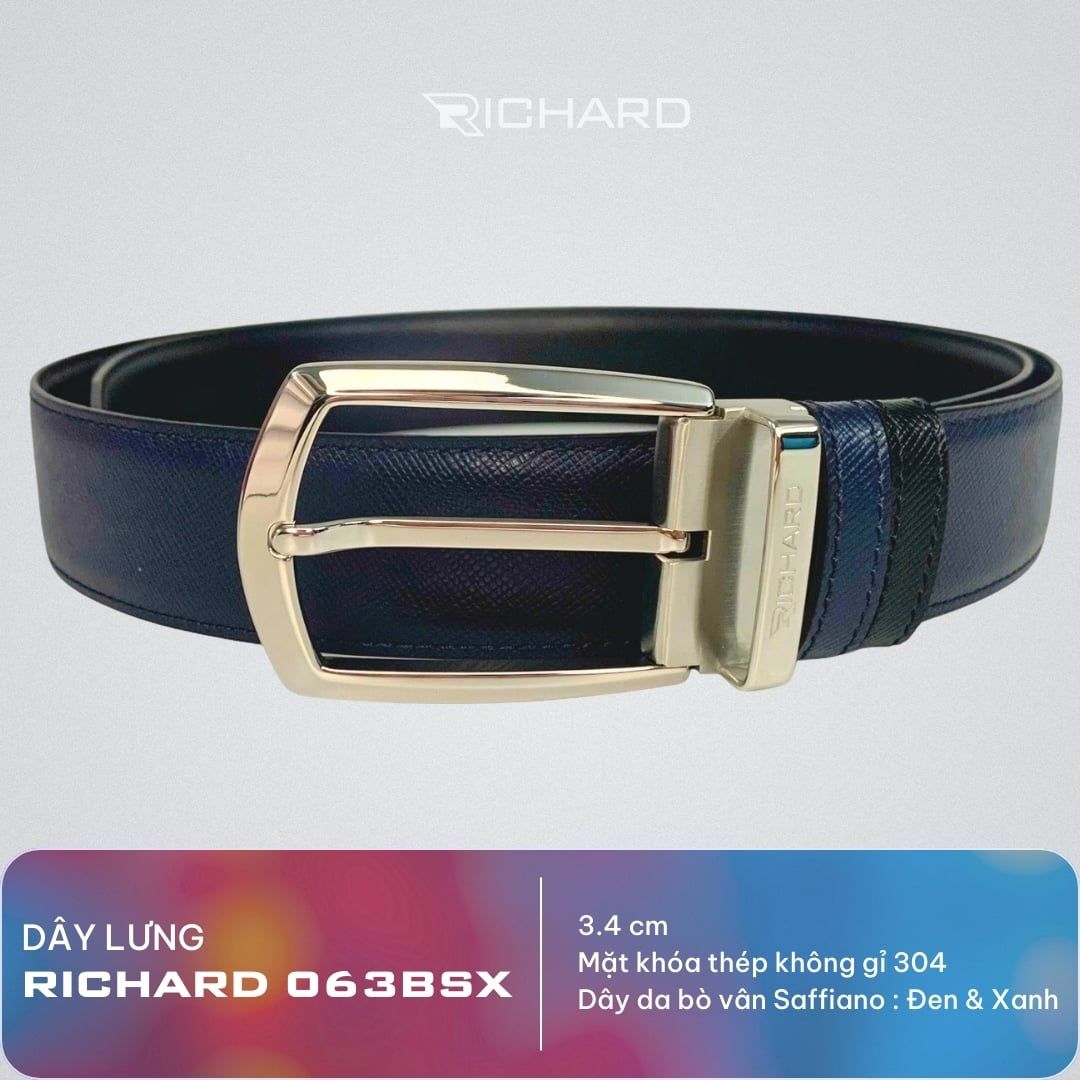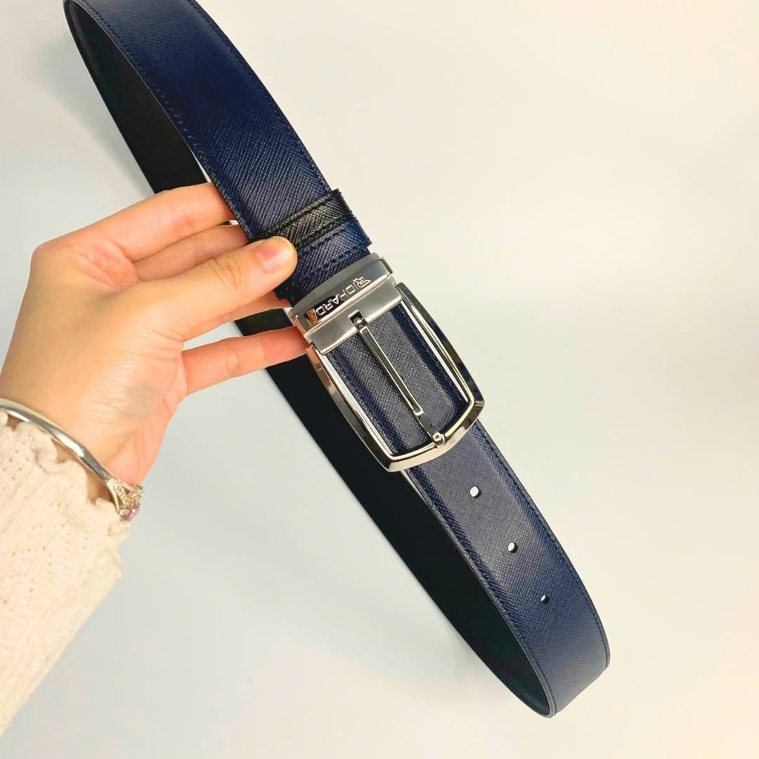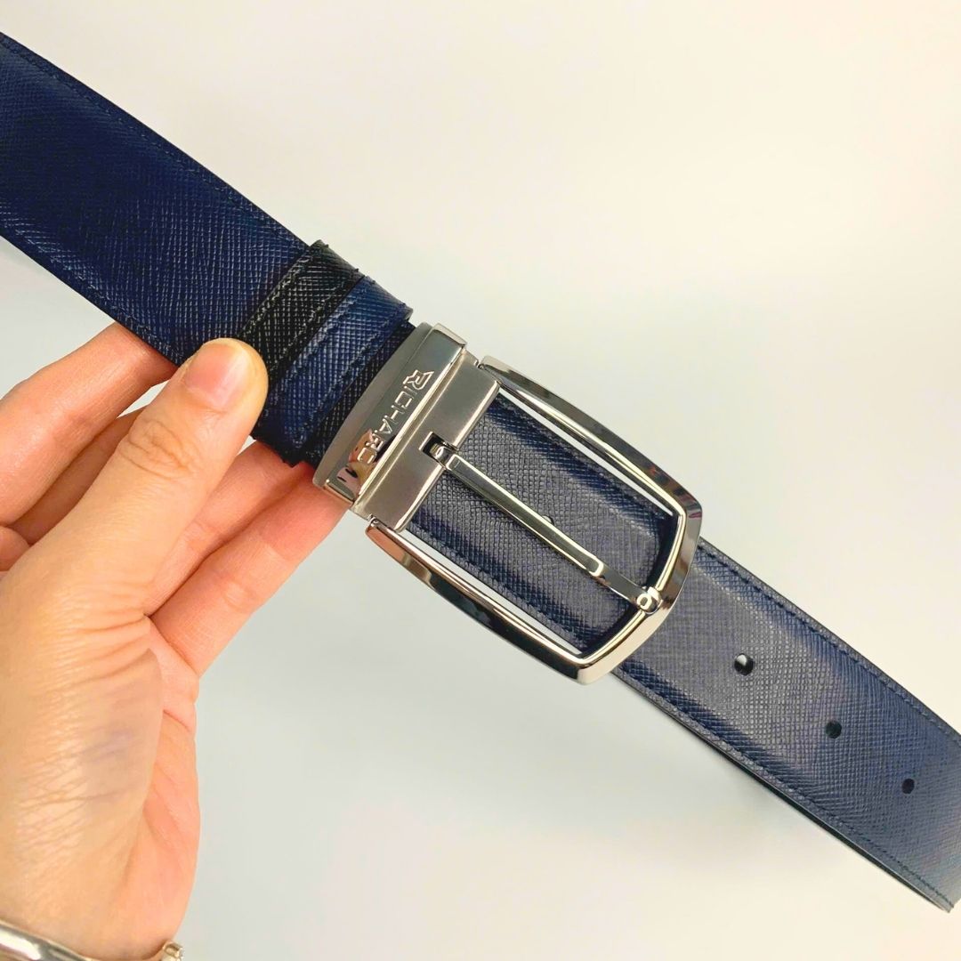 Dây lưng nam da bò vân Saffiano 3.4 cm mặt khóa thép không gỉ RC063BSX