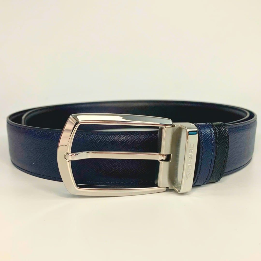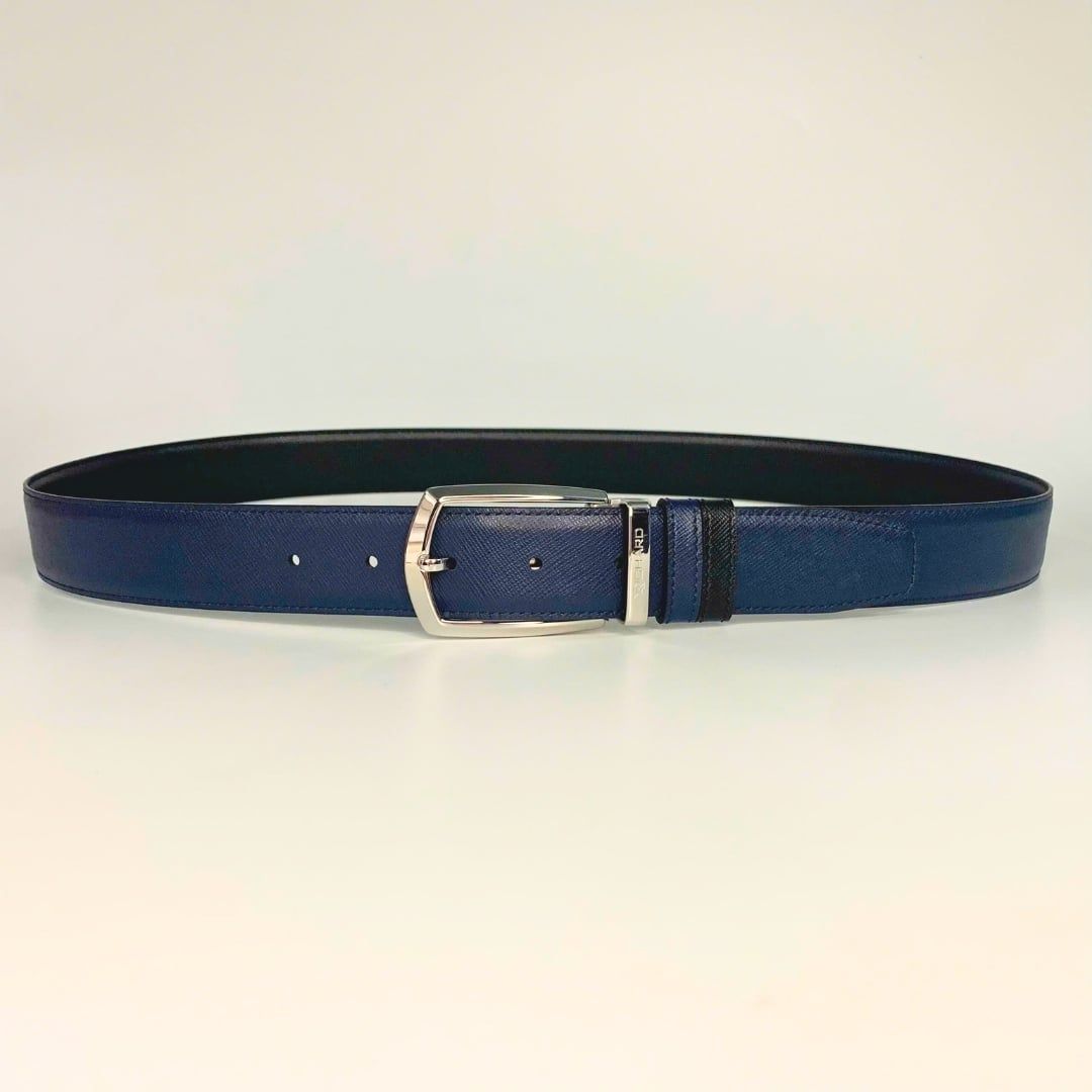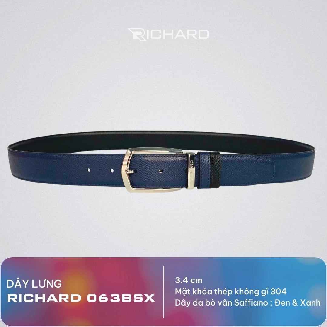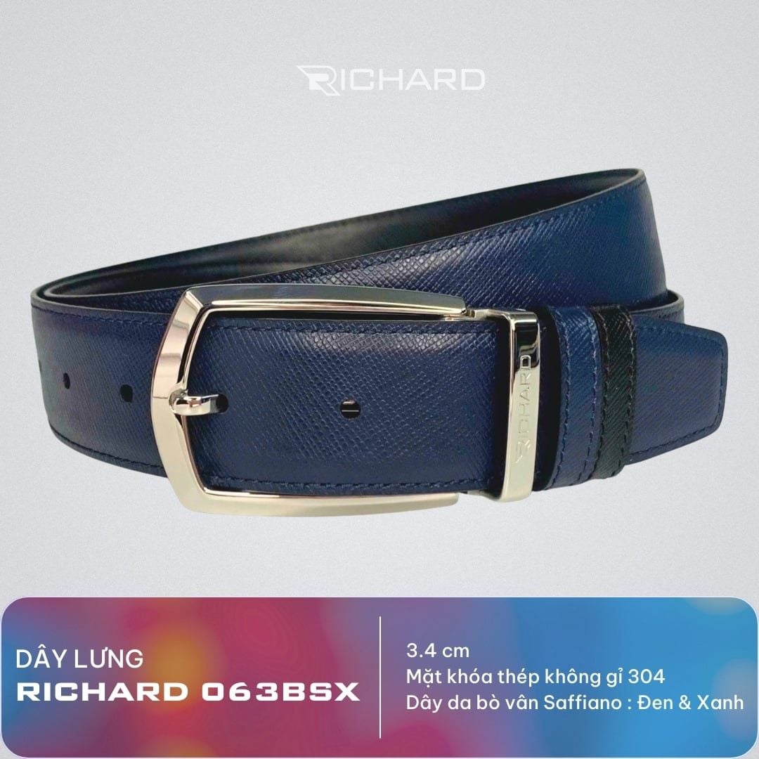 Dây lưng nam da bò vân Saffiano 3.4 cm mặt khóa thép không gỉ RC063BSX