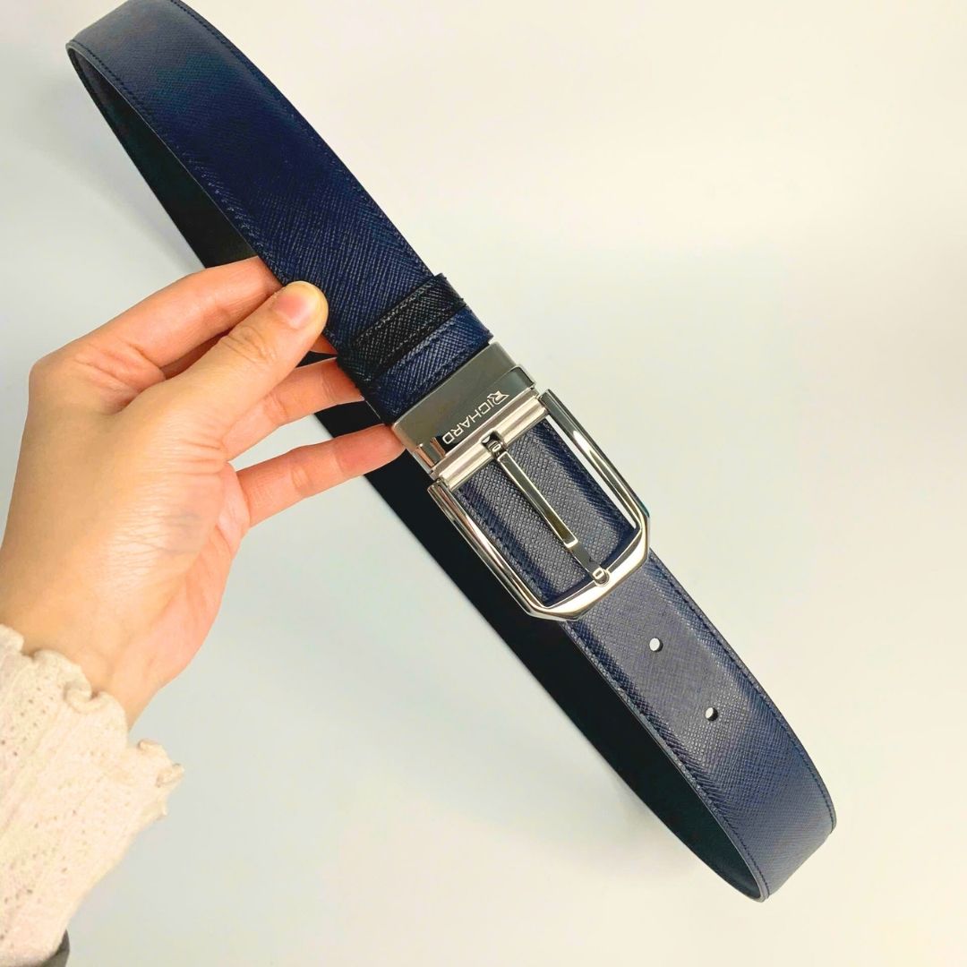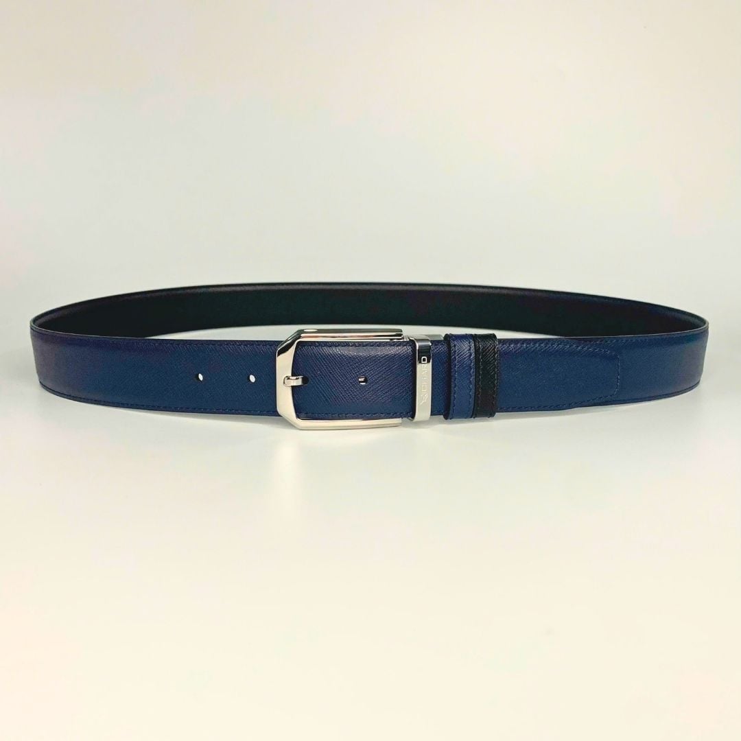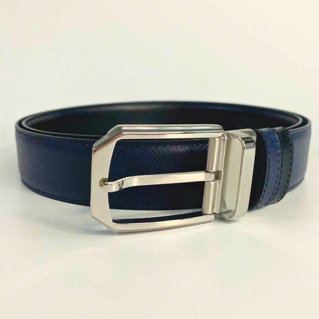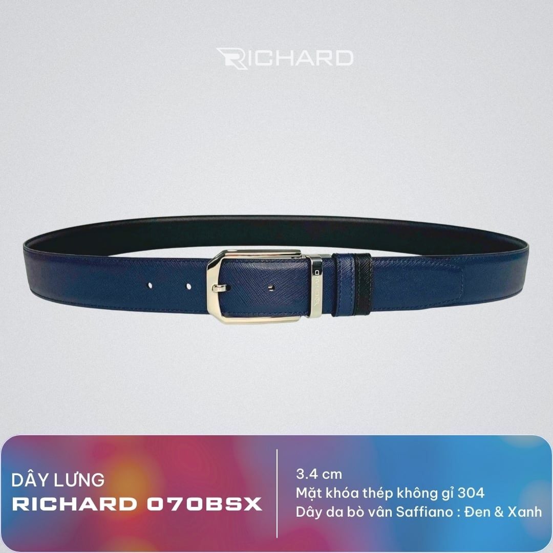 Dây lưng nam da bò vân Saffiano 3.4 cm mặt khóa thép không gỉ RC070BSX