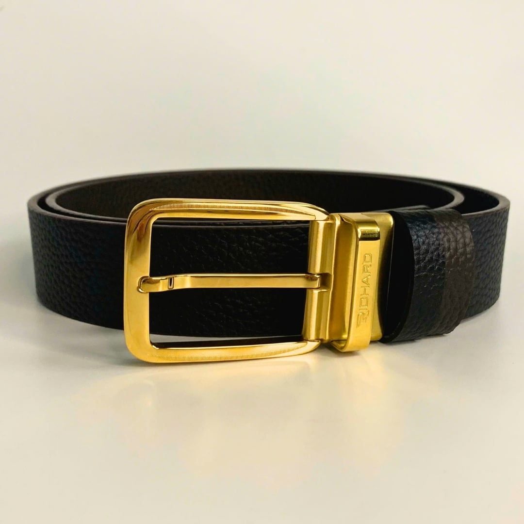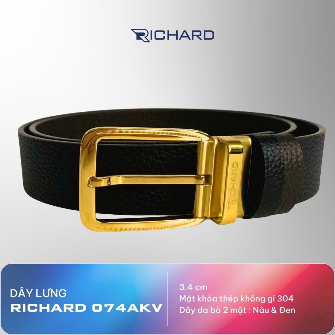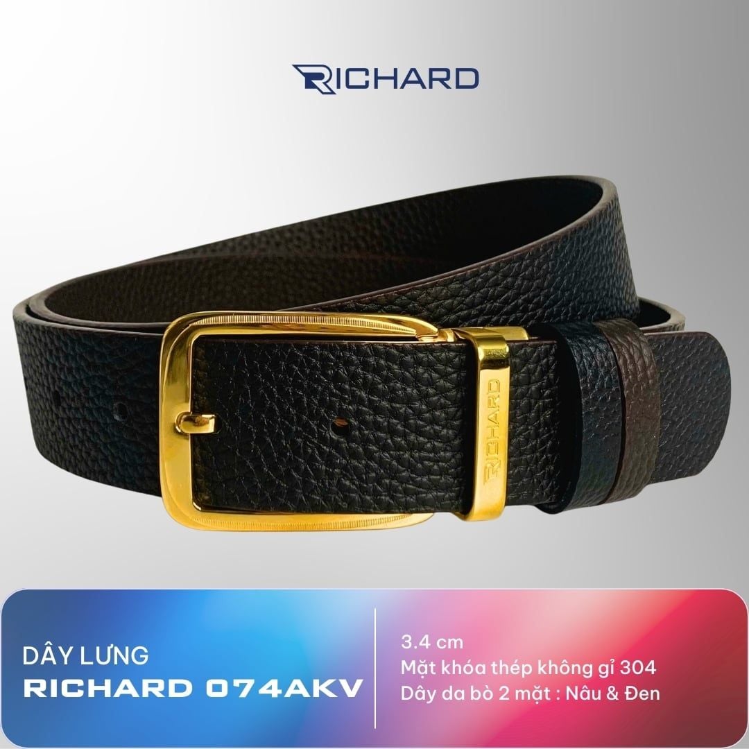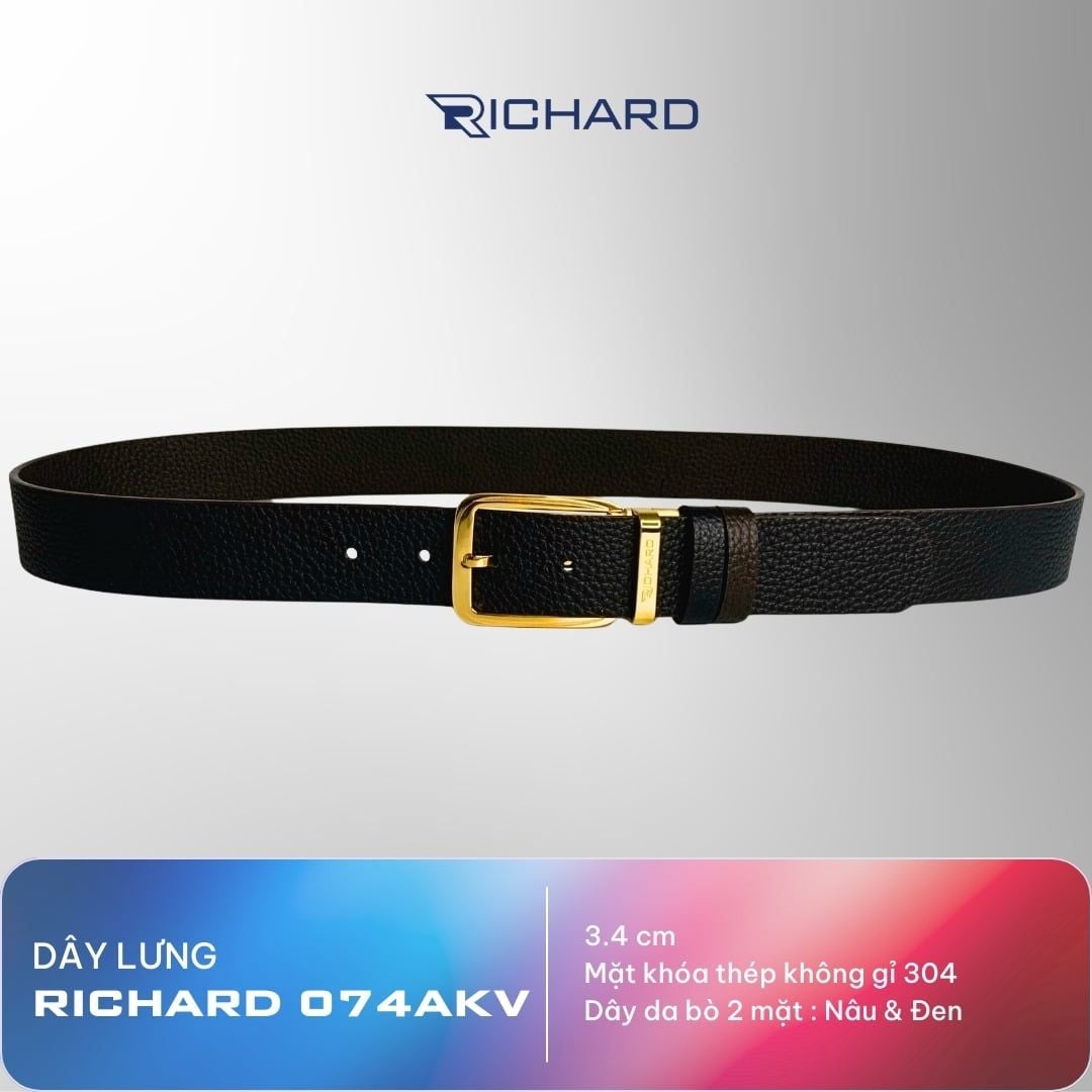 Dây thắt lưng nam da bò hai mặt nâu/đen 3.4cm khoá kim Richard K074AKV