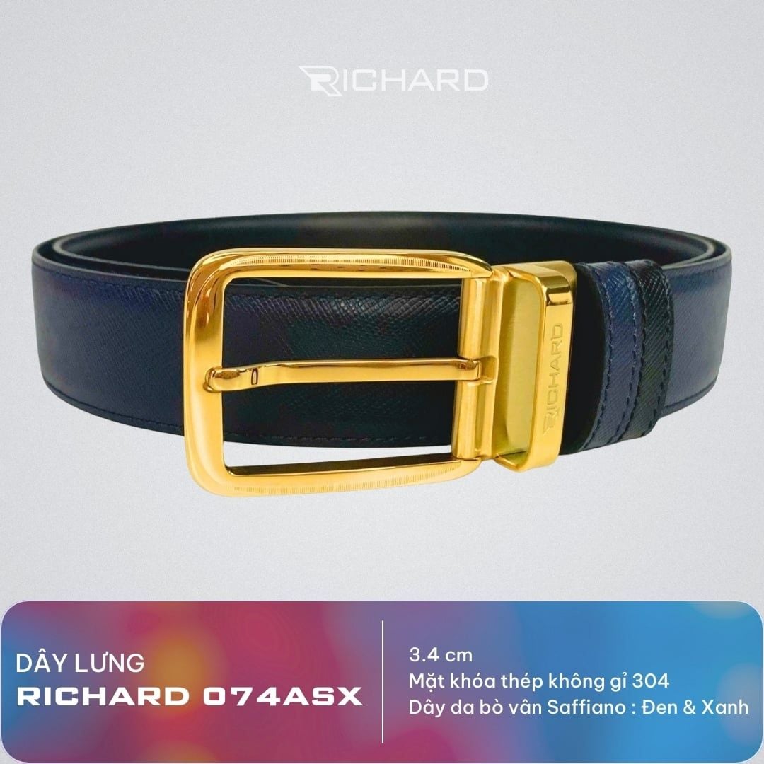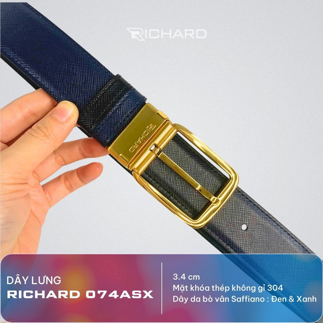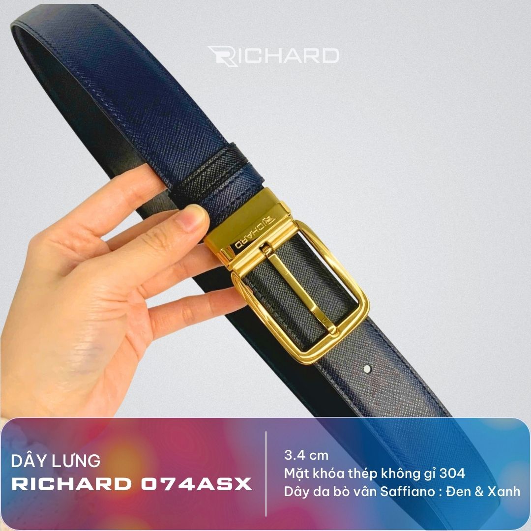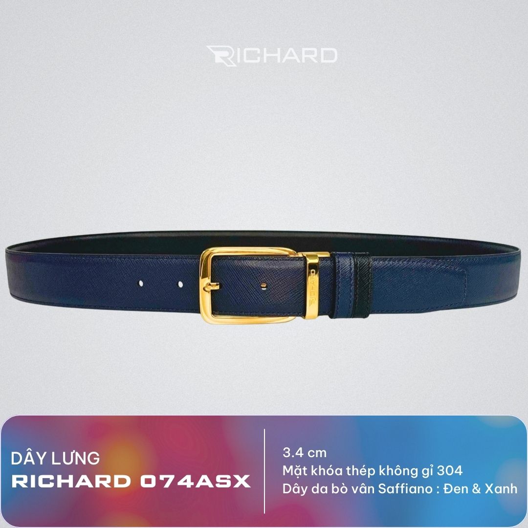 Dây lưng nam da bò vân Saffiano 3.4 cm mặt khóa thép không gỉ RC074ASX