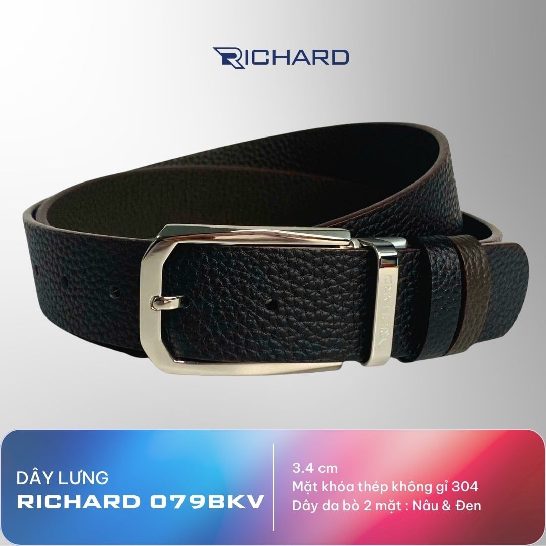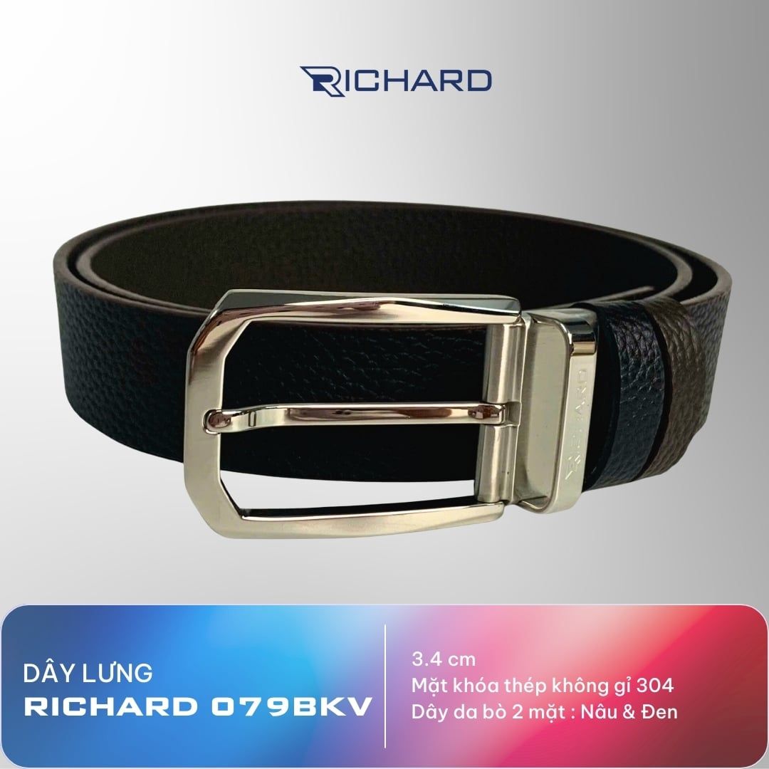 Dây lưng nam da bò 3.4cm khoá kim Richard RC079BKV