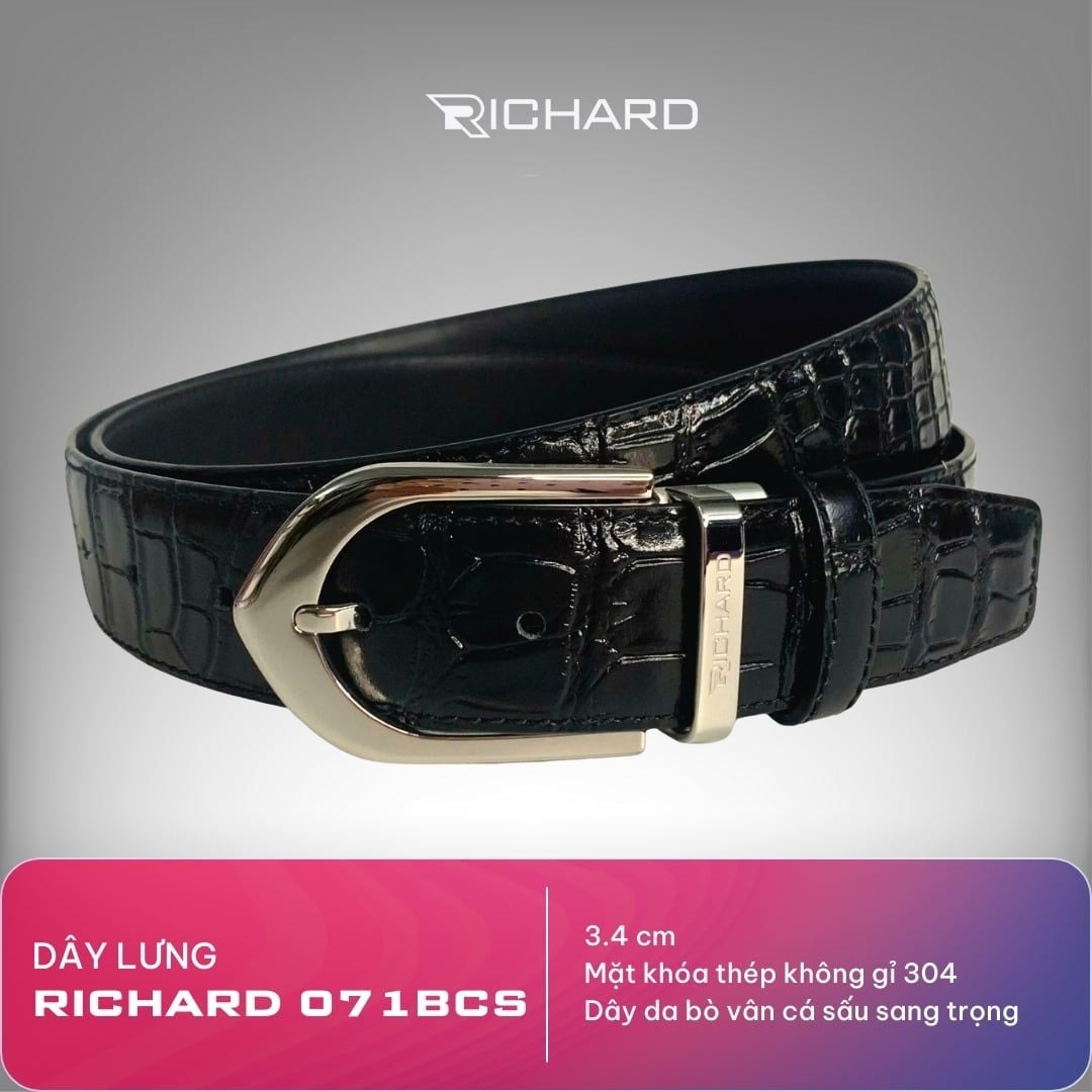 Dây lưng nam vân cá sấu 3.4cm khoá kim Richard RC071BCS